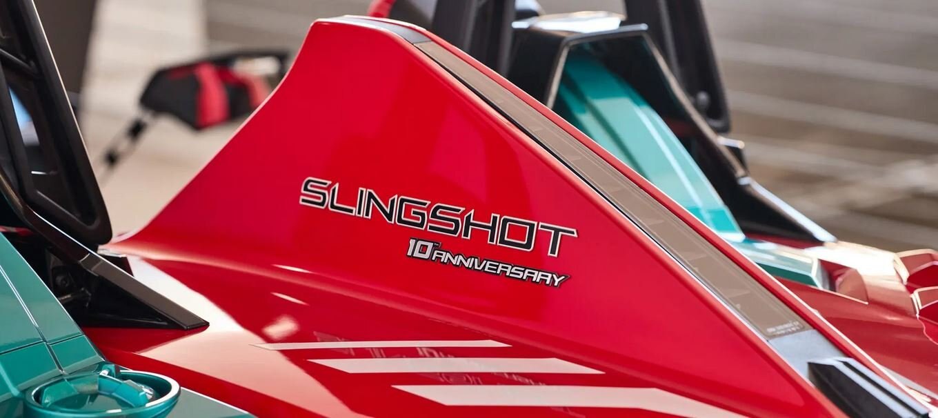 To celebrate a decade on the open road, the limited-edition Slingshot 10 embodies exceptional style and is guaranteed to catch every eye. It’s a high-performance 204 HP machine equipped with all of the R features including Brembo® Brakes, RIDE COMMAND+ & Apple CarPlay®, and a Vented Sport Hood, that make this model the best of the best. To take it next level, this model celebrates 10 years in style with exclusive 10th Anniversary branding throughout, a special edition paint scheme with a ghosted logo pattern, app controlled XK Glow® lighting, special edition Heated & Cooled Seats, roll hoop audio, and the new 8” speakers with multi-color lighting. Celebrate Slingshot history with an exclusive ride that demands all the attention.